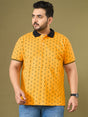 Men Plus Size Goldra Yellow Printed Polo Tshirt