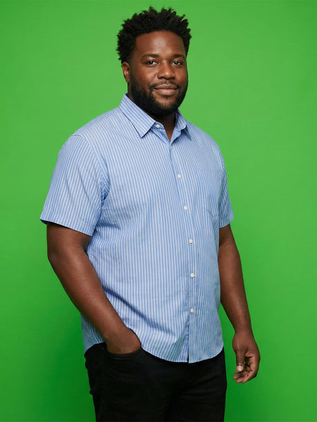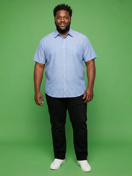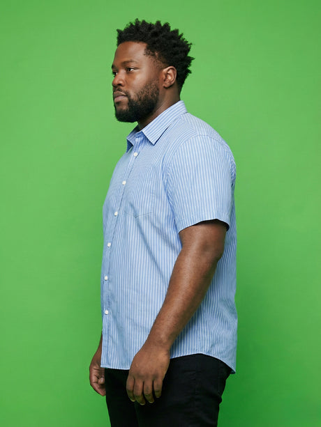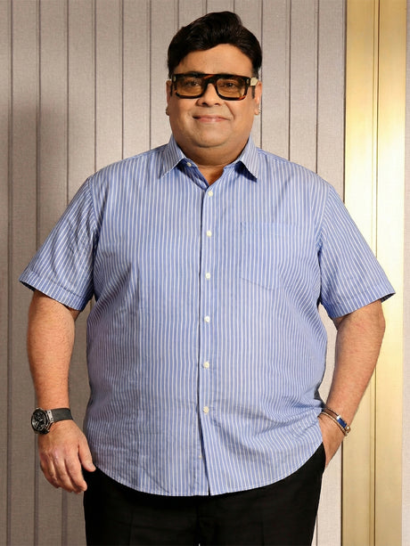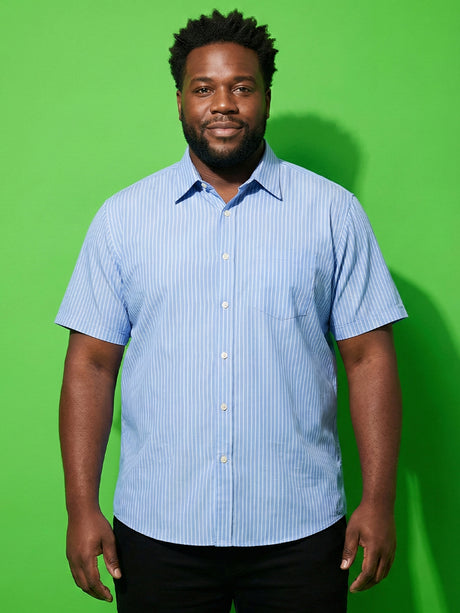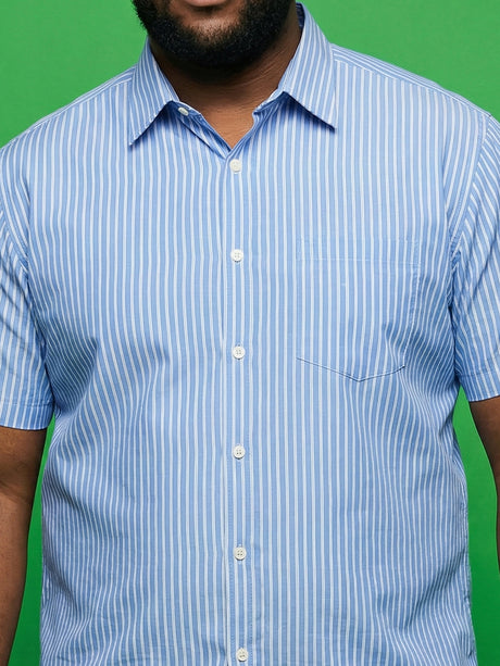 Men Plus Size Feather Sky-Blue Checkered Casual Shirt