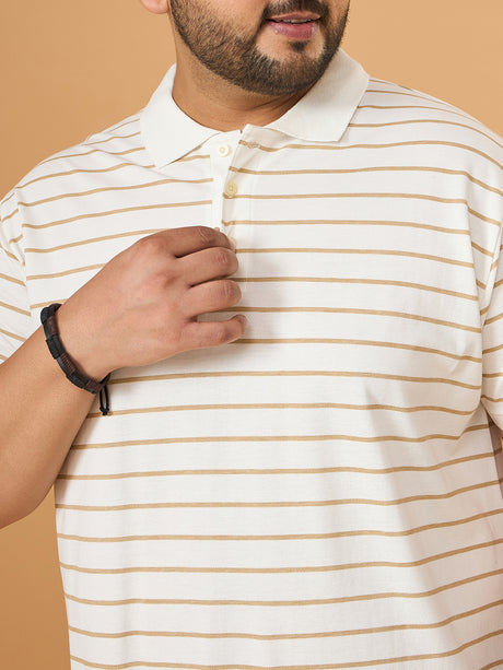 Men Plus Size Elegant White Striped Polo Tshirt