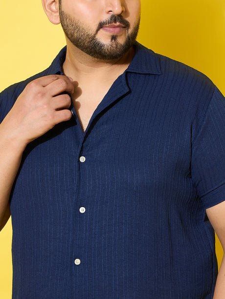 Men Plus Size Popper Navy Solid Casual Shirt