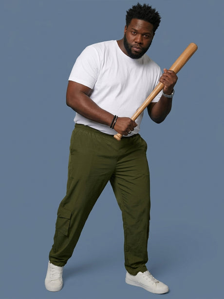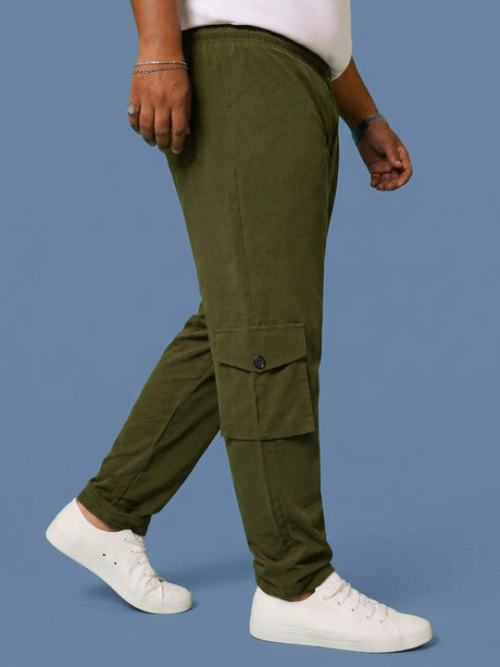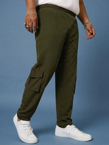 Men Plus Size Garrison Green Solid Trackpants