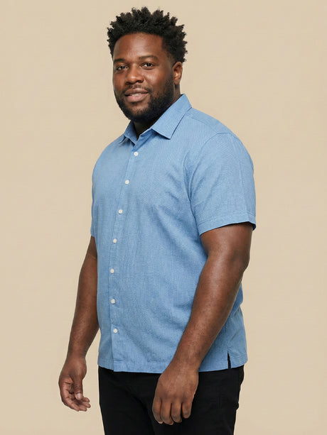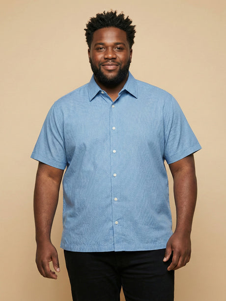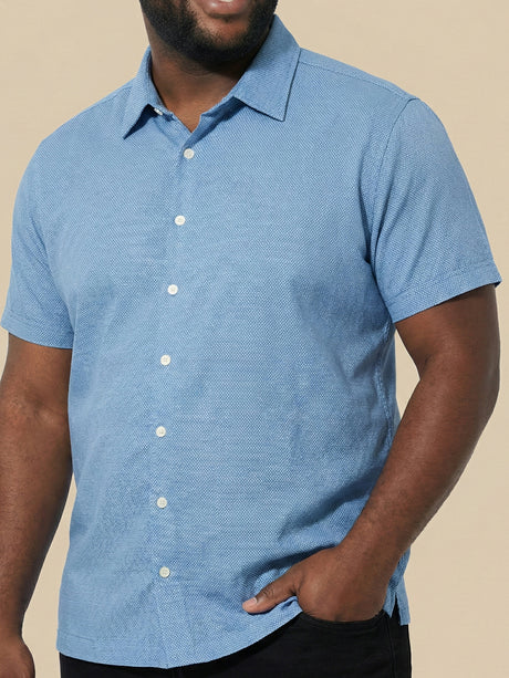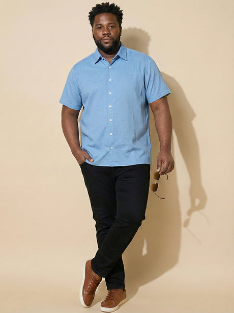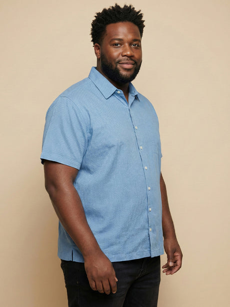 Men Plus Size Prussian Blue Self Design Casual Shirt