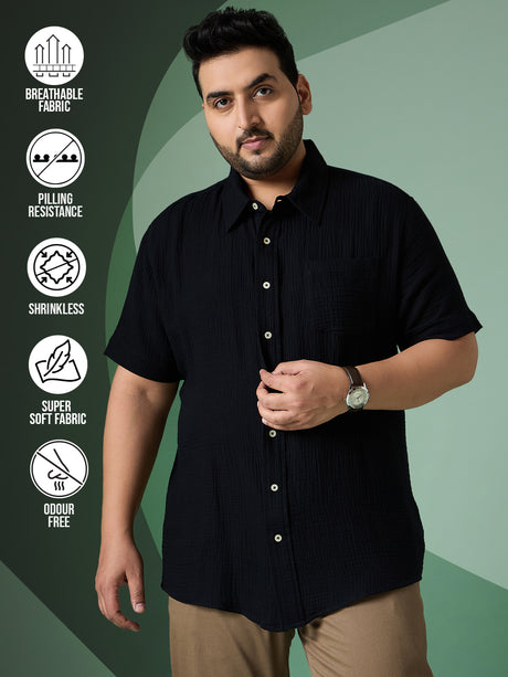 Men Plus Size Ocree-Black Solid Shirt