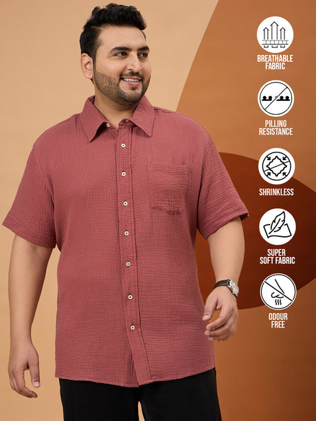 Men Plus Size Ocree-Dark Peach Solid Shirt