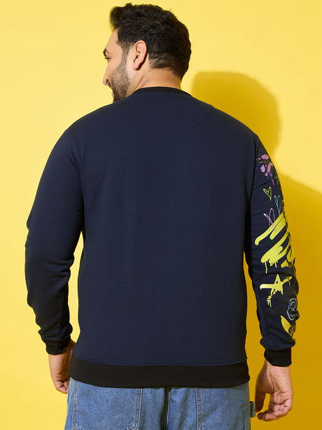Men Plus Size Sketch-Navy Printed Sweatshirt