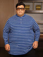 Blue Striped Henley T-Shirt with Round Neck and Full Sleeves