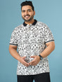Men Plus Size Doodle White Printed Polo Tshirt