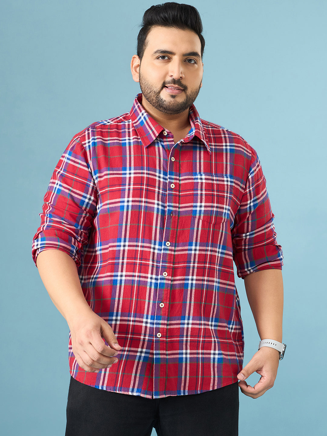 Men Plus Size Garnet Multicolor Checkered Casual Shirt