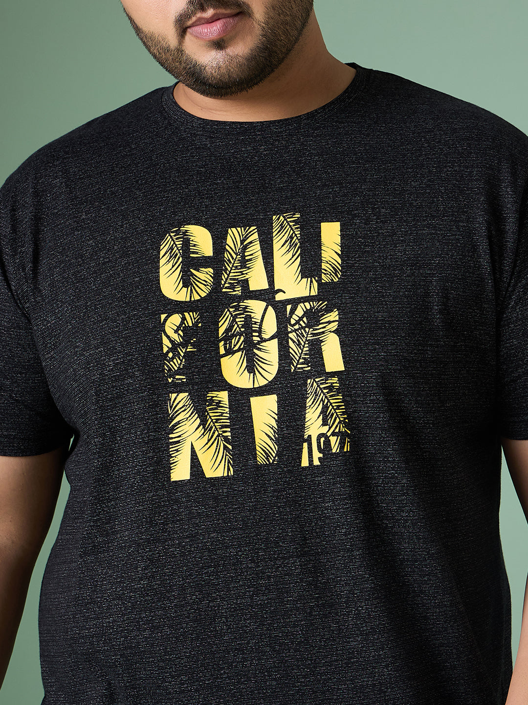 Black Solid Melange T-shirt, has a round neck collar, and Half Sleeves.